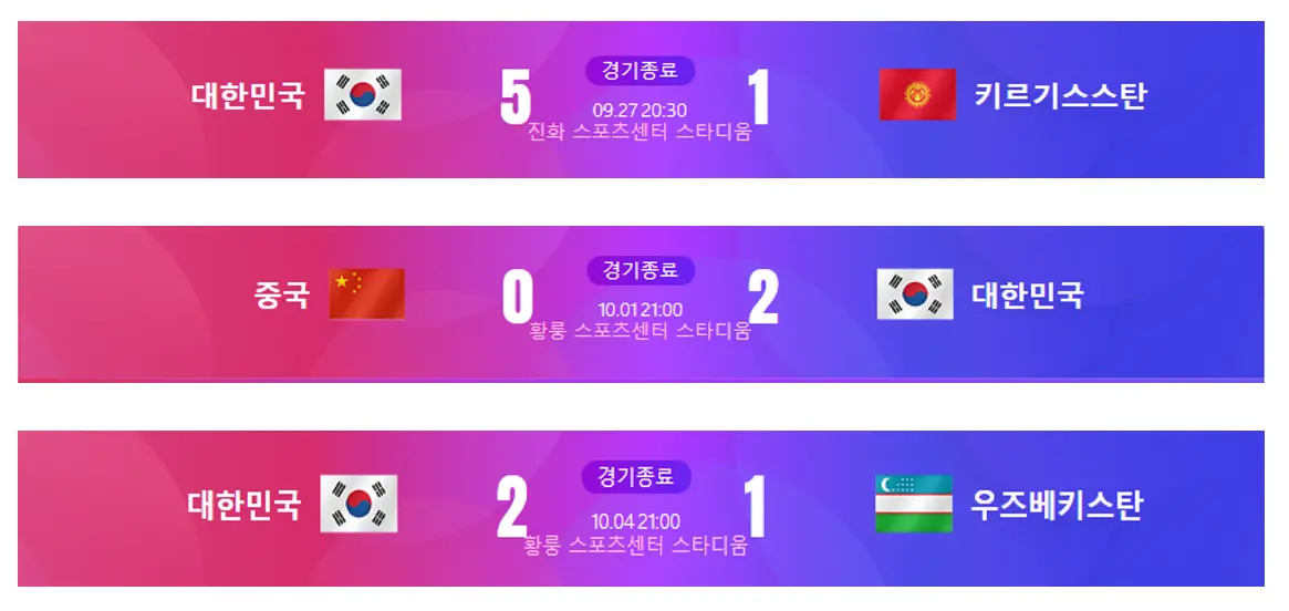 이번 포스팅에서는 항저우 아시안 게임 남자 축구 대표팀의 예선전부터 결승전까지 등 모든 경기 결과를 정리해 보도록 하겠습니다.